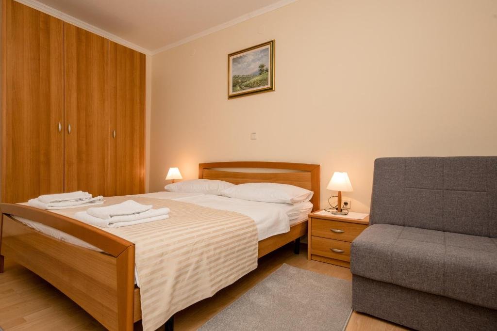 Raspolaže sa 1 krevetom za 1 osobu i 1 velikim bračnim krevetom.
